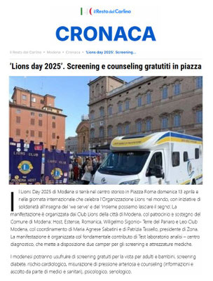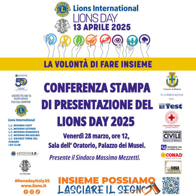 Il 28 Marzo, presente il Sindaco di Modena Massimo Mezzetti abbiamo presentato al Palazzo dei Musei di Modena insieme agli altri Lions Club della città durante la conferenza stampa le numerose attività che caratterizzeranno le giornate del Lions Day 2025 con screening e counseling gratuiti in piazza.