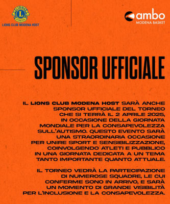 Il 𝗟𝗶𝗼𝗻𝘀 𝗖𝗹𝘂𝗯 𝗠𝗼𝗱𝗲𝗻𝗮 𝗛𝗼𝘀𝘁 sarà 𝘀𝗽𝗼𝗻𝘀𝗼𝗿 𝘂𝗳𝗳𝗶𝗰𝗶𝗮𝗹𝗲 del torneo che si terrà il 𝟮 𝗮𝗽𝗿𝗶𝗹𝗲 𝟮𝟬𝟮𝟱, in occasione della 𝗚𝗶𝗼𝗿𝗻𝗮𝘁𝗮 𝗠𝗼𝗻𝗱𝗶𝗮𝗹𝗲 𝗽𝗲𝗿 𝗹𝗮 𝗖𝗼𝗻𝘀𝗮𝗽𝗲𝘃𝗼𝗹𝗲𝘇𝘇𝗮 𝘀𝘂𝗹𝗹’𝗔𝘂𝘁𝗶𝘀𝗺𝗼.