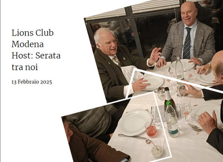 Invito ad una "Serata tra noi" per i soci del Lions Club Modena Host e i loro consorti. Giovedì 13 febbraio 2025, ore 20:15. Osteria di Via Giardini,